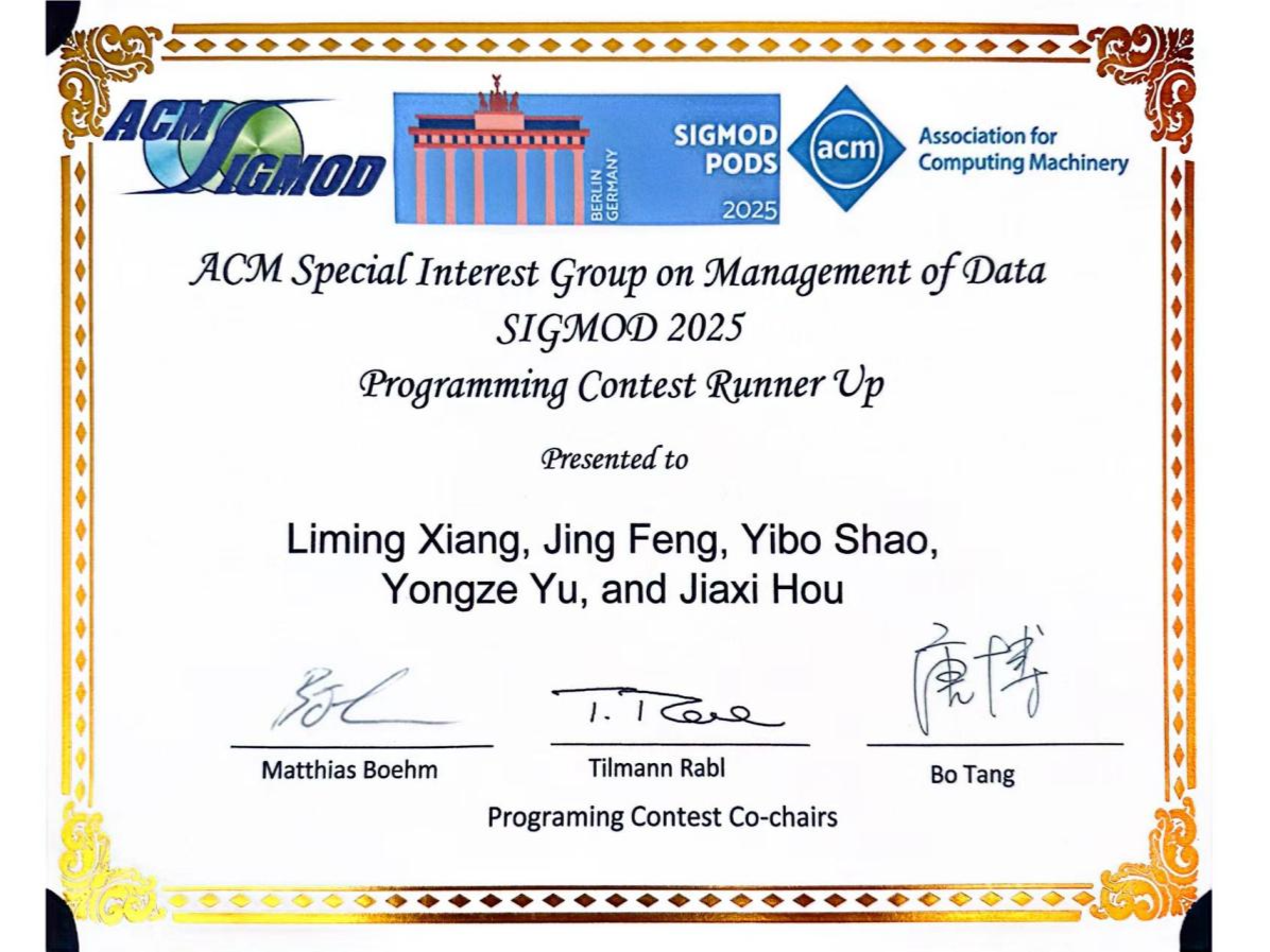2025-07-10北理工学子获得SIGMOD 2025国际编程竞赛全球亚军 -